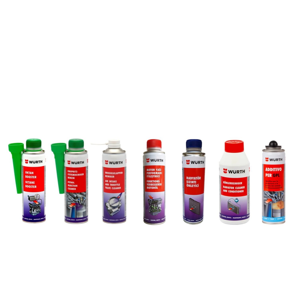 Würth dizel yakıt katkısı-benzinli yakıt katkısı-partikül temizleme-kelebek boğaz temizle-motor içi temizleme-yağ katkısı v.b ürünleri servisimizde kullanıyoruz.